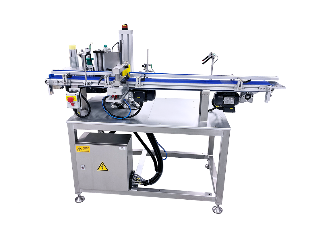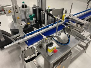 Die Etikettiereinheit verfügt über ein zentrales Förderband, das die Produkte zuverlässig zur